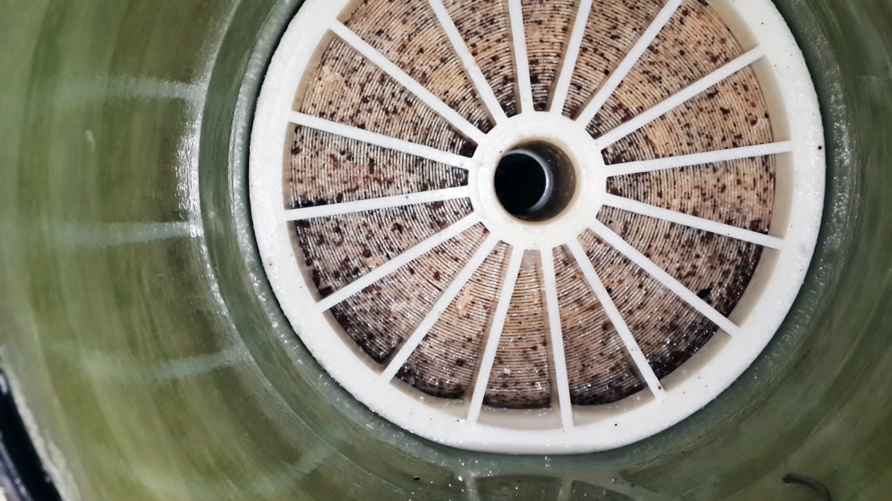 就本項目而言,在反滲透膜拆卸過程中未能在滲透二段出口部分膜元件中發(fā)現(xiàn)明顯的白色粉末狀的物質(zhì);一段進(jìn)口段部分膜元件有明顯的異味(腥臭味),膜殼內(nèi)壁及反滲透膜上有黏液或鼻涕狀物質(zhì);其次在一二段膜的進(jìn)水端發(fā)現(xiàn)大量的細(xì)砂、焊渣、等較大的固體顆粒物,另外明顯感覺到一段進(jìn)水端的第一支膜重量明顯超重。
